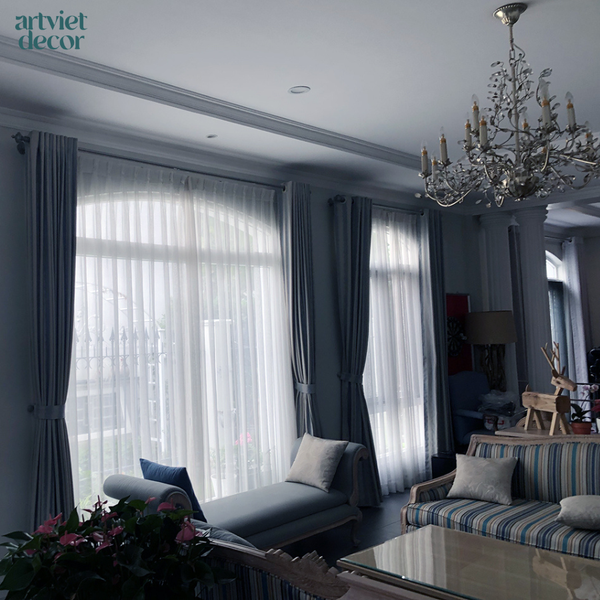 Ngôi nhà mang phong cách nội thất bán cổ điển với kiến trúc Pháp. Chủ nhà đã lựa chọn ArtViet Decor cung cấp các hạng mục đồ vải như rèm cửa, sofa, ga giường, sử dụng các chất liệu cao cấp được nhập từ Châu Âu, Mỹ và Úc tạo cho ngôi nhà mang dấu ấn riêng.