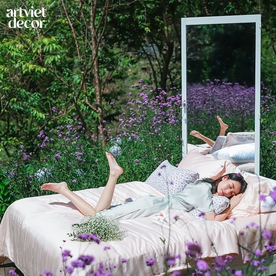 Lụa tơ tằm có mật độ sợi vải TC400, đây là dòng vải tơ tằm loại 3 trong dòng sản phẩm cao cấp từ Ai CậpVẻ đẹp óng ánh, mềm mịn đến mướt mát của lụa tơ tằm mang lại cảm giác thoải mái và êm ái, mát mẻ, mang đến giấc ngủ ngon cho người sử dụng. Giặt được ở máy giặt mà không bị xù lông.