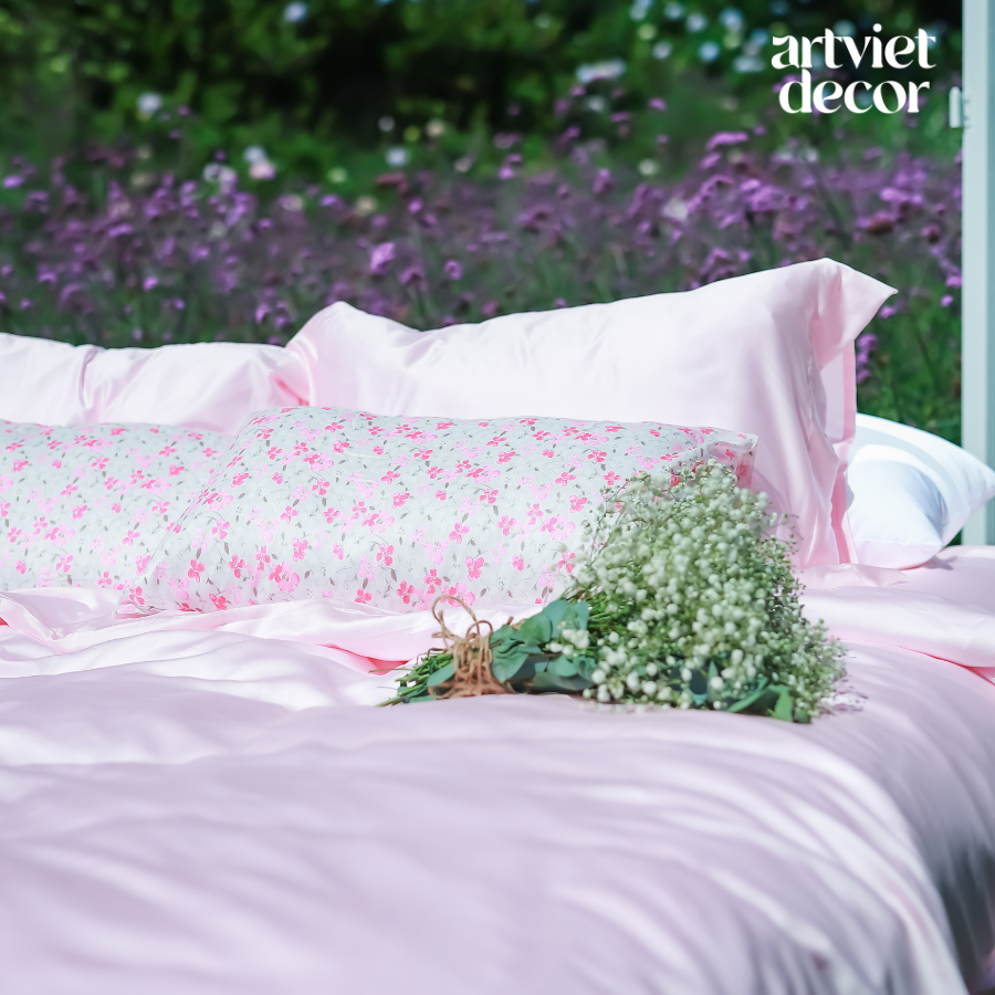 Ga giường lụa tơ tằm TC400 cao cấp màu hồng phấn - LM.LZ251
