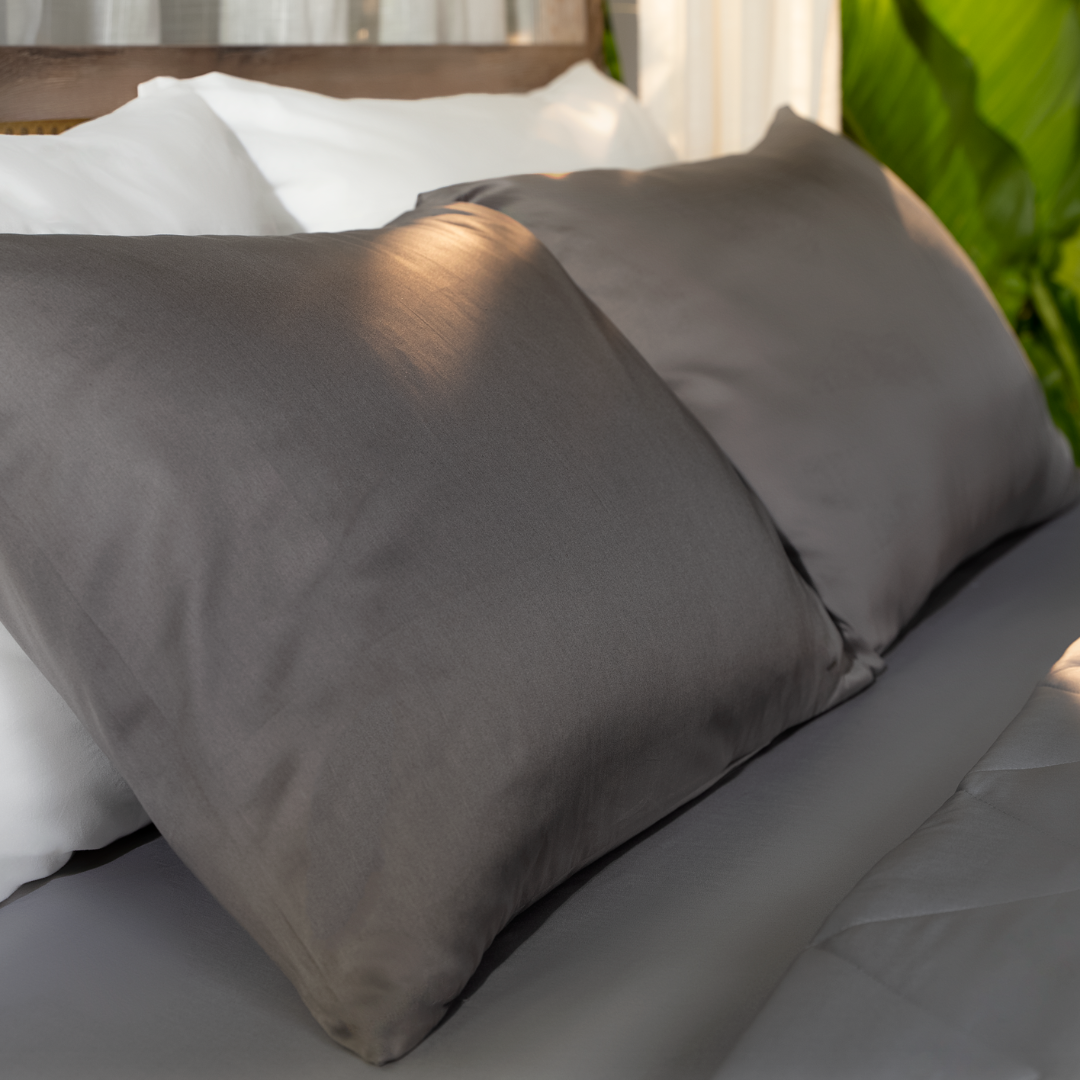 Bộ chăn ga gối Cotton satin màu xám trơn có mật độ sợi vải TC400