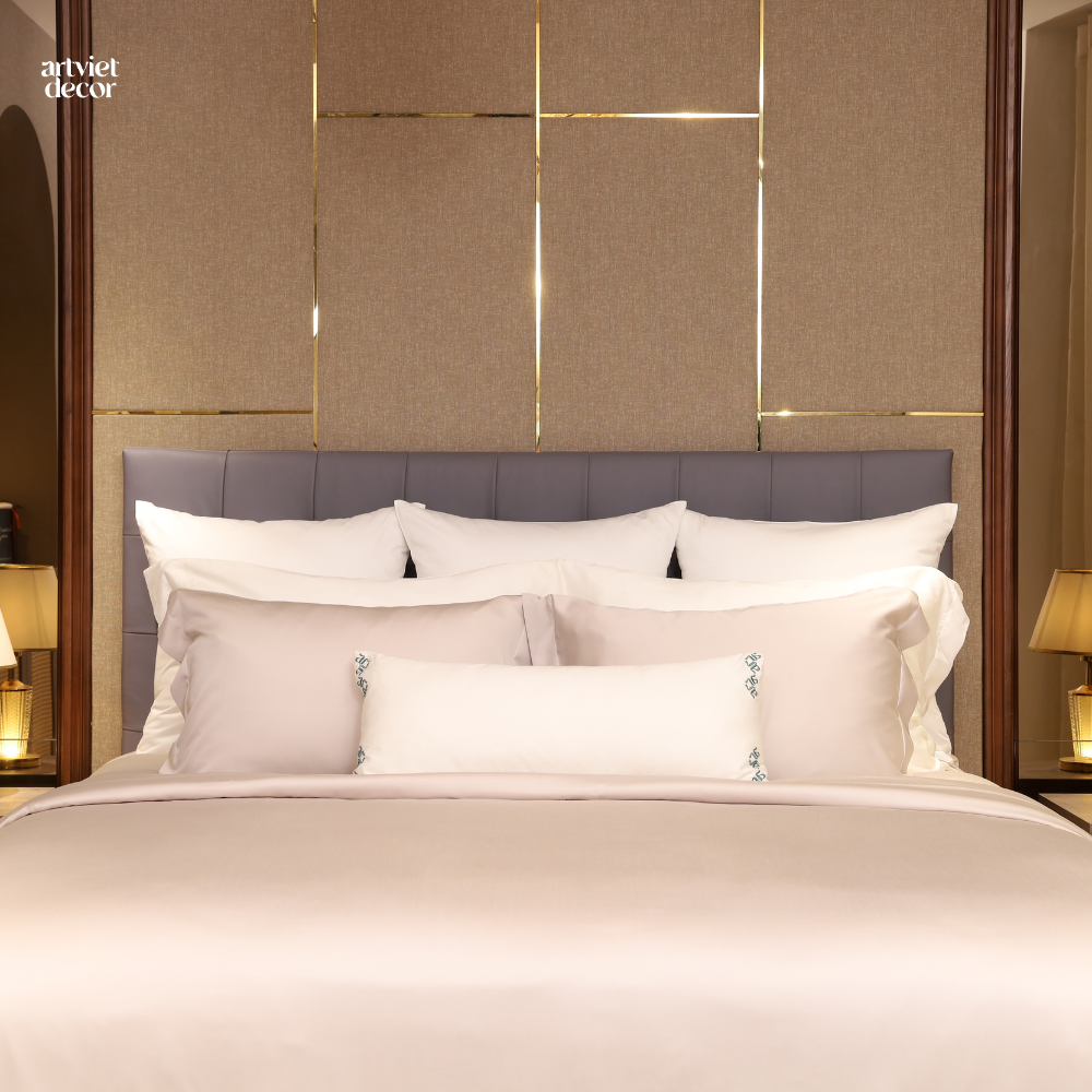 Ga giường lụa tơ tằm TC500 cao cấp màu kem xám - GM.AVSS1012
