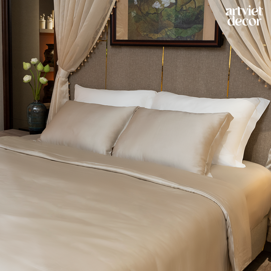 Ga giường lụa tơ tằm TC400 cao cấp màu kem nhạt - LT.AVS62
