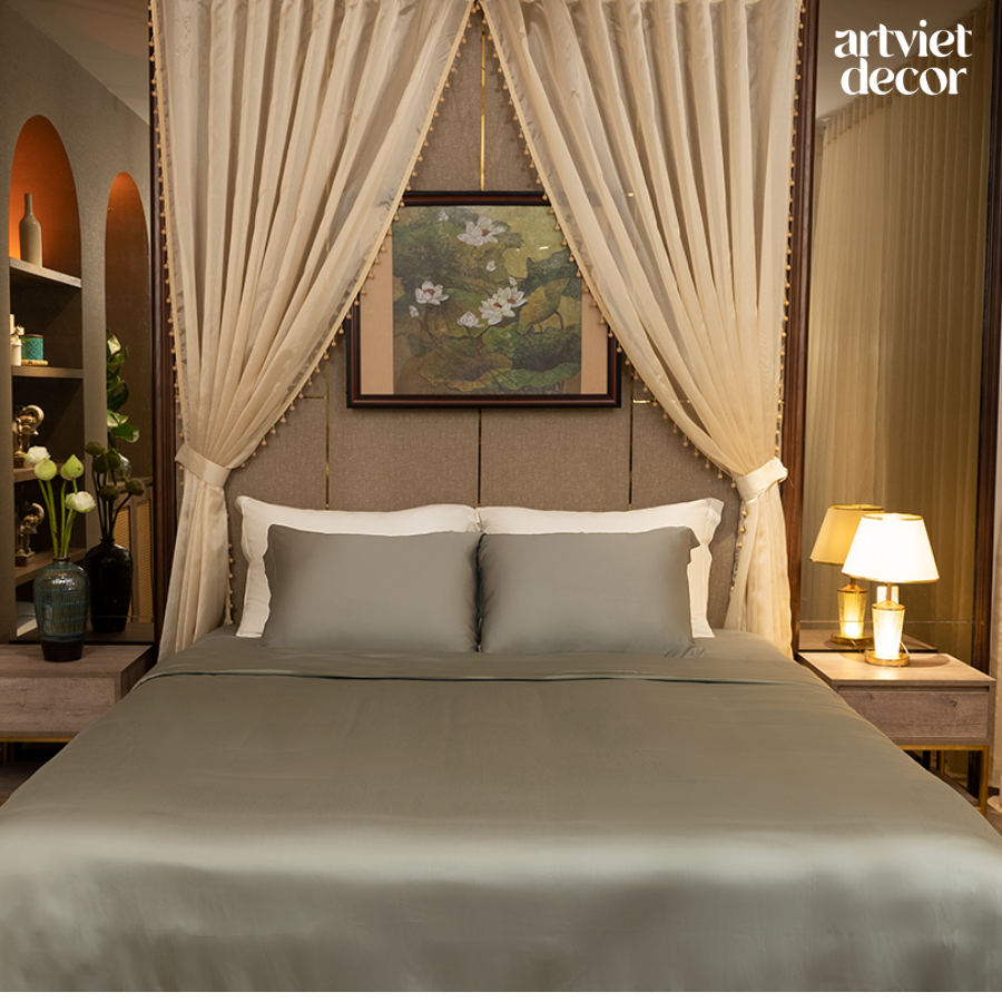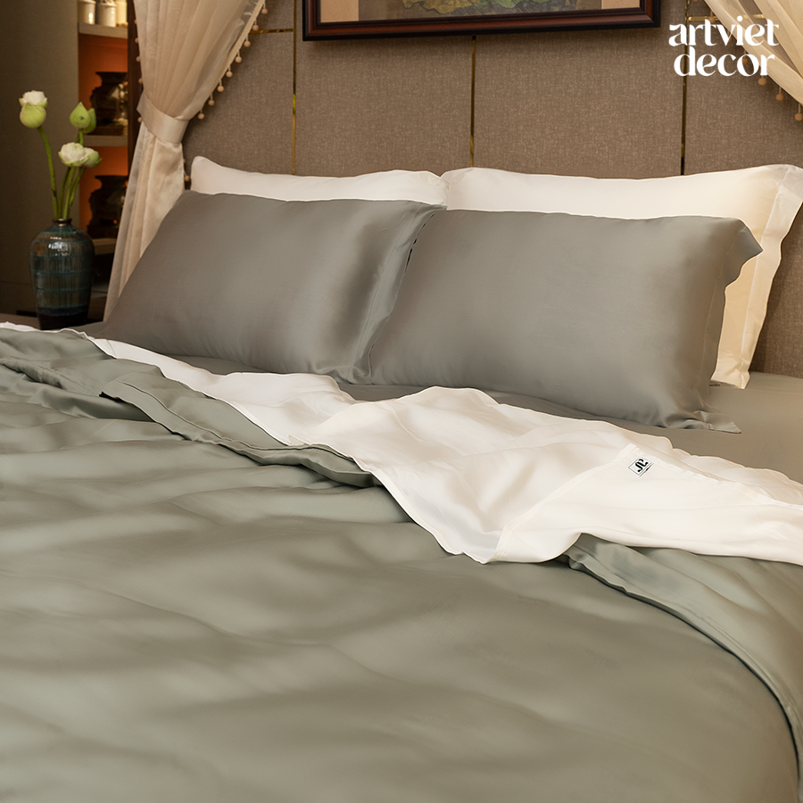 Ga giường lụa tơ tằm TC400 cao cấp màu xanh rêu - LT.AVS129